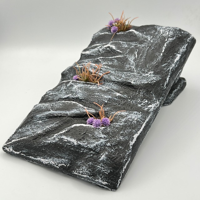 ハンドメイドのウェットシェルターです。 ◯サイズ シェルター 外寸: 高さ約8cm 横約25cm 奥行約14cm 内寸:高さ約4cm 横約17cm 奥行約8cm (ハンドメイドのため多少の誤差があります) ◯タイプ ウェットシェルター 素材は生体に優しい素材を使用して作成しておりセメントやモルタル、アクリルカチオン系塗料を使用しております。 当方でも同素材を使用のシェルターを使用しておりますが生体への影響はございません。 水洗いの際は、柔らかいブラシ、スポンジを使用して優しく擦って下さい。